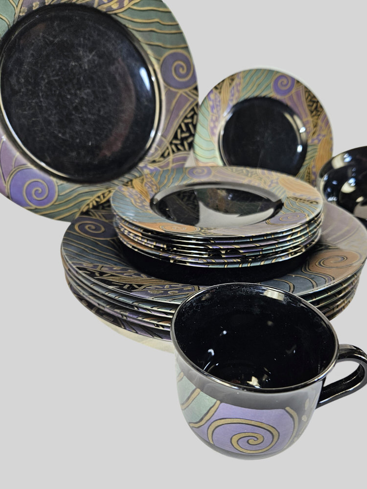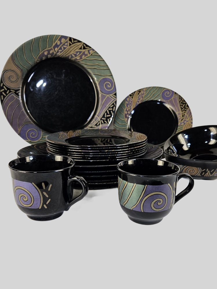 Vintage jaren 1990 Arcoroc Frankrijk Tampico Zwart Glas 6 persoons