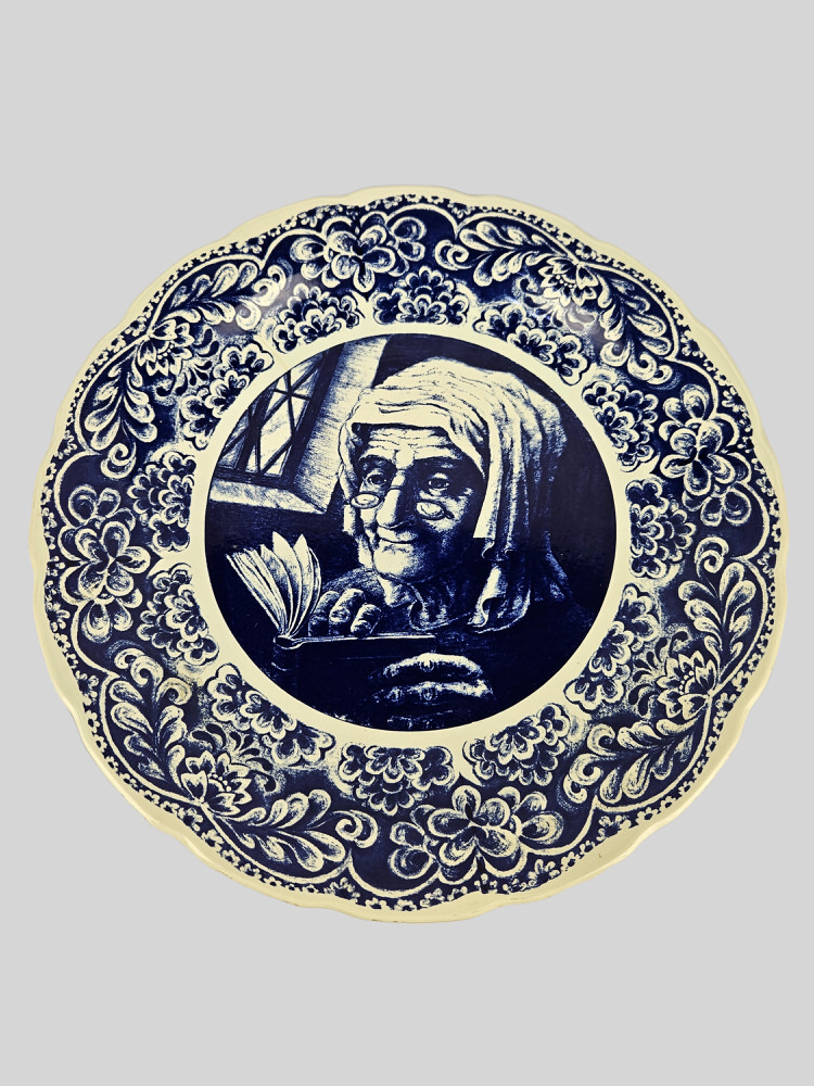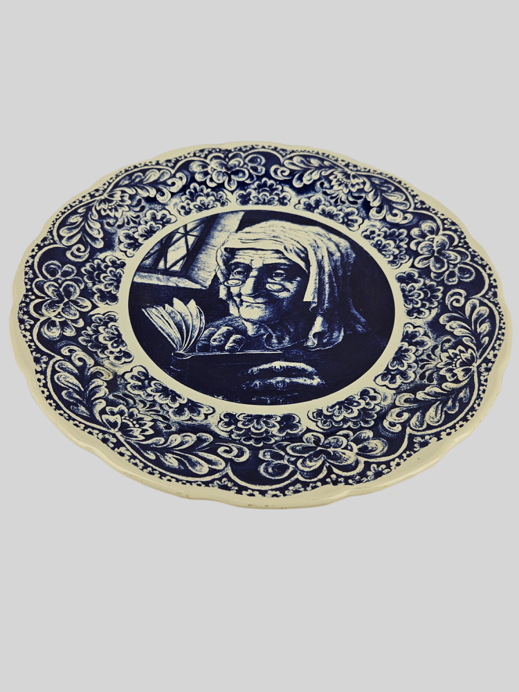 Bord Delfts blauw Oude vrouw – 40 cm
