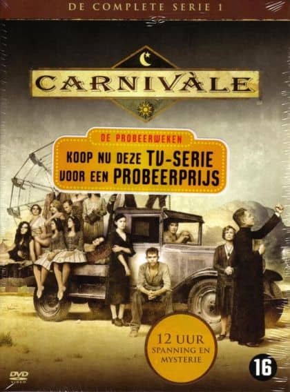 ‘- Set in the 1930s Dust Bowl, 18-year old Ben Hawkins finds himself all alone in this world when his mother passes on. But a travelling Carnivàle takes him in. We also see the story of Brother Justin, a priest who is trying to find his way in the world. Little do Ben and Justin know, but they are to fight in a biblical battle. With help on the side (Ben with the carnie folk (Sofie, Libby, Apollonia, Ruthie, Samson, Lila, Lodz, Management) and Justin with his sister, Iris) they find out which side each are on and try to battle with the other for what they believe. – Speelduur 720 min.