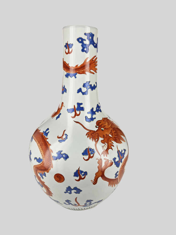 Geëmailleerd met een viertenige draak die tussen de wolken vliegt en een vlammende parel achtervolgt.