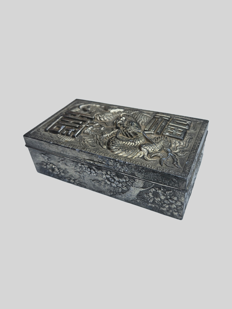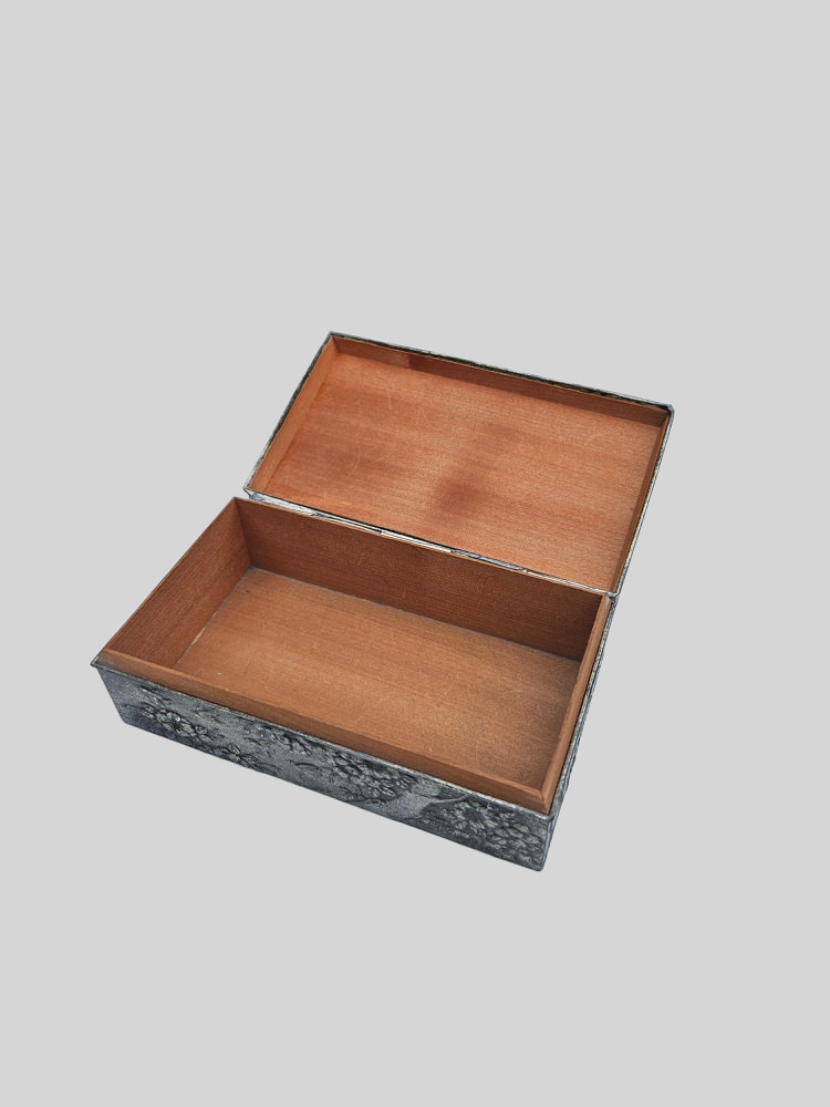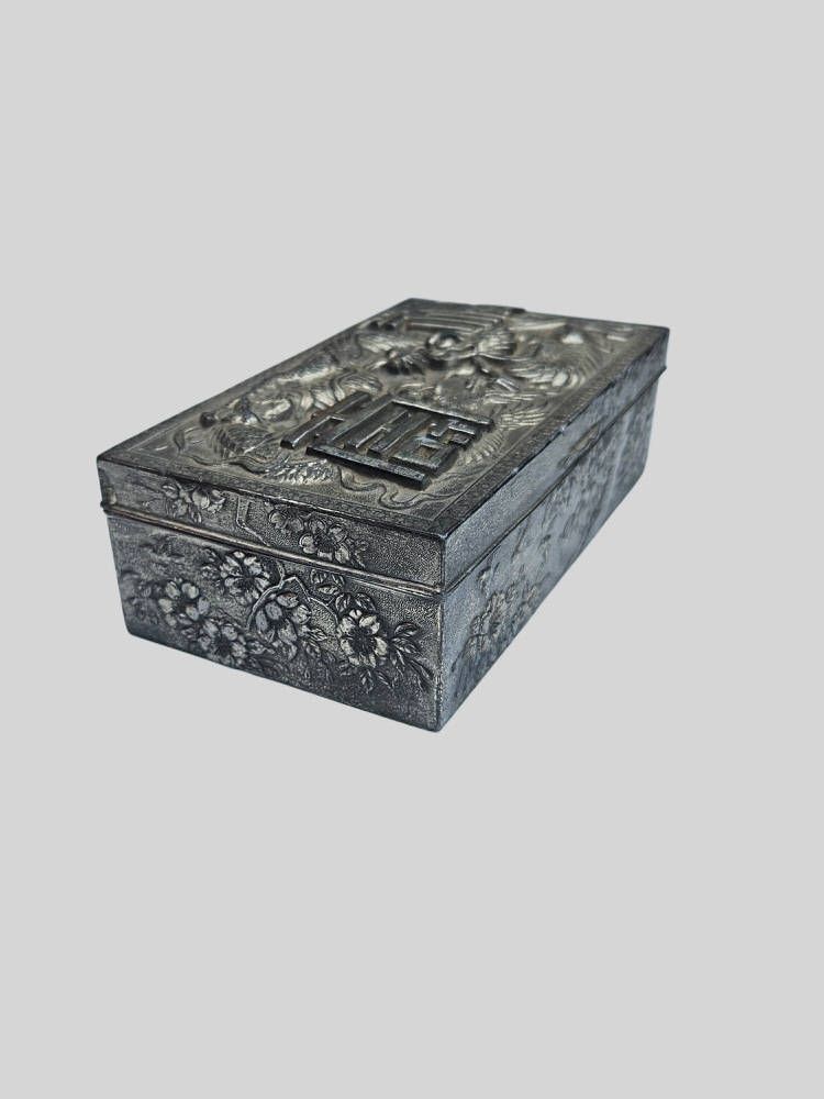Schitterend Japans koperen (verzilverd) dekseldoosje.