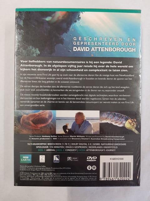 ‘- David Attenborough tackles the subject of the origin of life on Earth. He investigates the evidence from the earliest fossils, which suggest that complex animals first appeared in the oceans around 500 million years ago, an event known as the Cambrian Explosion. The naturalist travels around the world, using some of the latest fossil discoveries and their nearest equivalents amongst living species to reveal what life may have been like at that time. Visual effects and computer animation are used to reconstruct and animate the extinct life forms. – Speelduur 115 min.