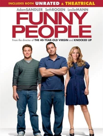 – Funny People gaat over komediant George Simmons (Adam Sandler). Hij is succesvol, vrouwen houden van hem en mannen willen zoals hem zijn. Keerzijde is het feit dat Simmons zelf een ingenomen, arrogante zak is die om niemand iets geeft. Hier lijkt verandering in te komen als hij erachter komt dat hij niet meer zolang te leven heeft. – Speelduur 146 min.