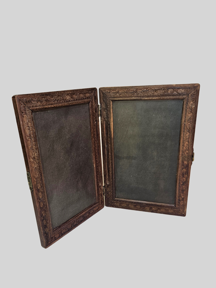 De lei is open te klappen als een boek en is aan twee kanten te beschrijven.