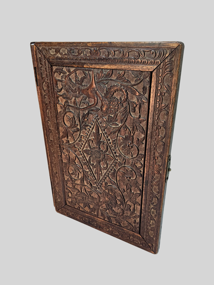 Deze prachtige handgesneden houten schoollei vermoedelijk uit Nederlands-Indië is een waar sieraad.
