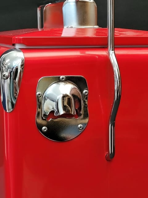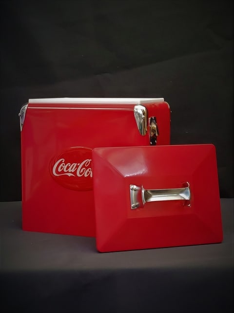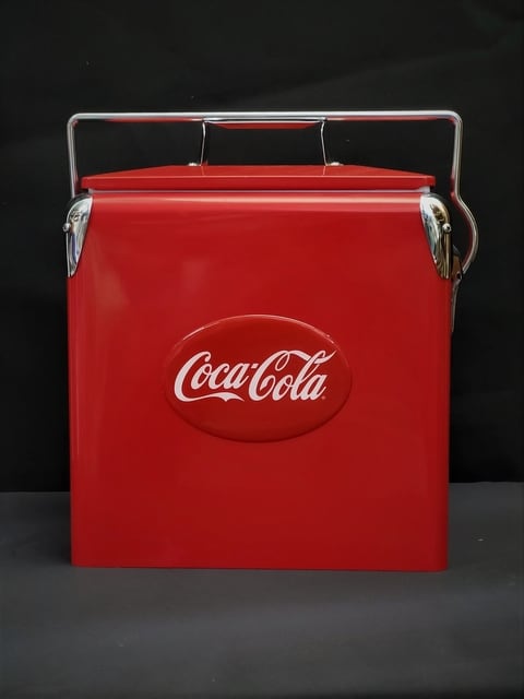 Repro vintage Coca Cola coolbox met flessen opener aan zijkant goed voor 12 blikjes