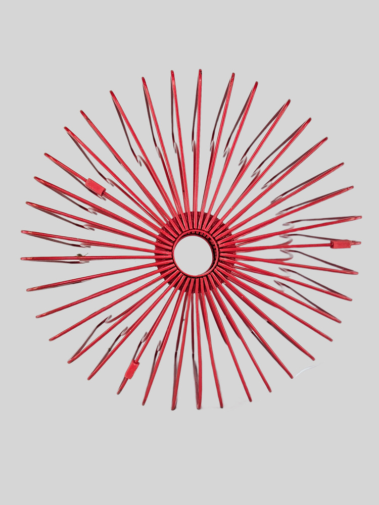 rode metalen fruitmand ontwerp van Ehlen Johansson,