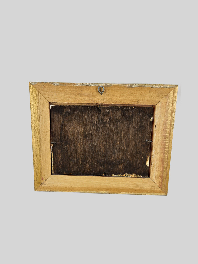 Klein schilderij op hout met mooie lijst.