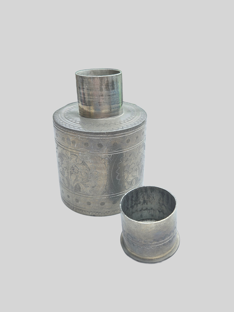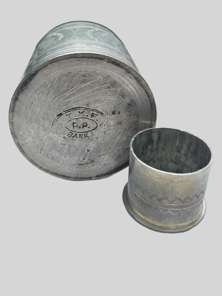 Tinnen tabakspot uit Indonesië.