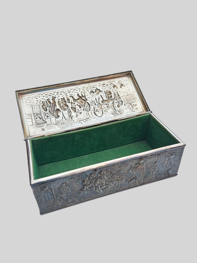 Bijzonder fraaie Theedoosje door DE in de jaren 1960 aangeboden naar het ontwerp, in haut-reliëf uitgevoerd, van Herbert Hooijkaas.
